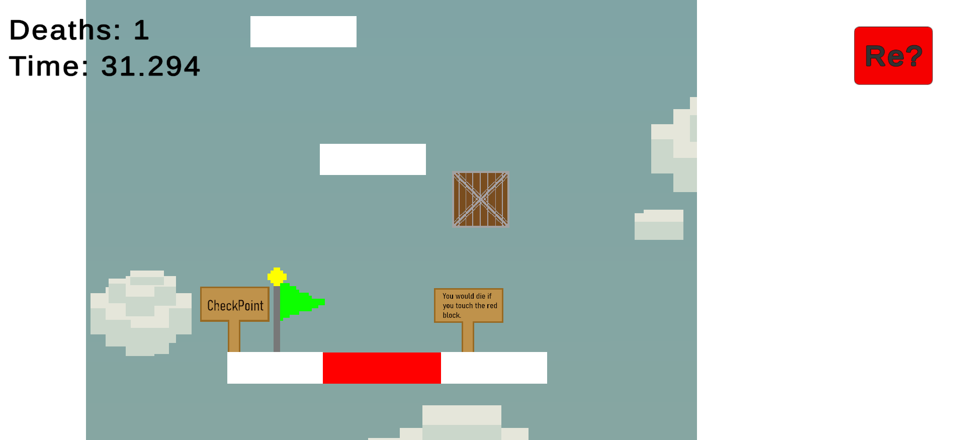 My First Game. You can Jump the box with dragging, and Restart with the key R. and some blocks blink or move, and checkpoints are located in the maps. Enjoy!
